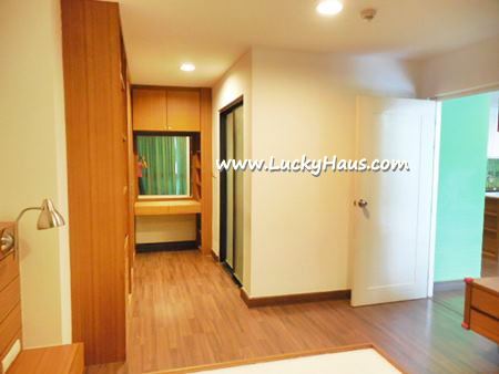 Unit in the low-raise condo on Sukhumvit, 900 Meters to Ekamai BTS station, not far to GateWay, the interior was designed by interior designer; custom-made unit, many storages, big kitchen & dining space, unique & cozy. Only serious client is allowed to view this actual unit, just don't want to disturb the tenant.